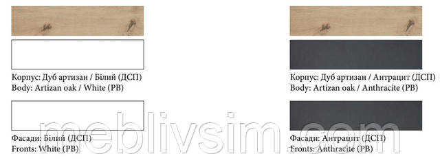 - колір корпусу дуб артизан-білий, дуб артизан-антрацит,