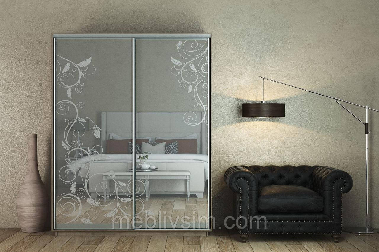 Ціна вказана за шафу купе розміром 150*60*220. Профіль срібло. Фасади дзеркало з малюнком.